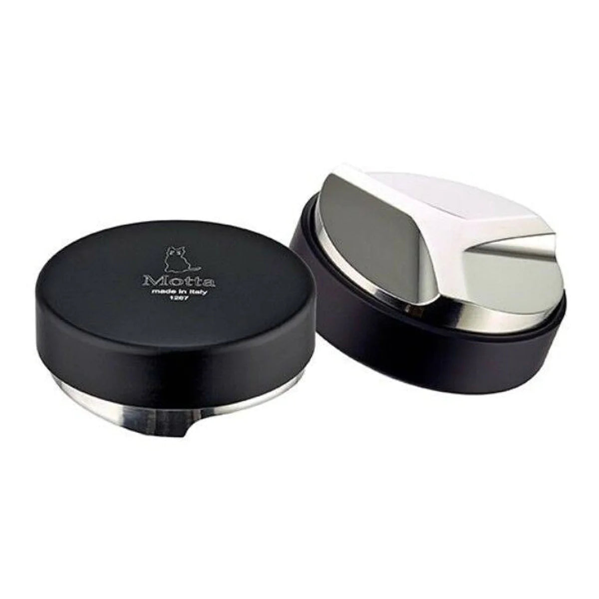 Svartur 58mm kaffijafnari frá Motta á Ítalíu ("coffee leveling tool").