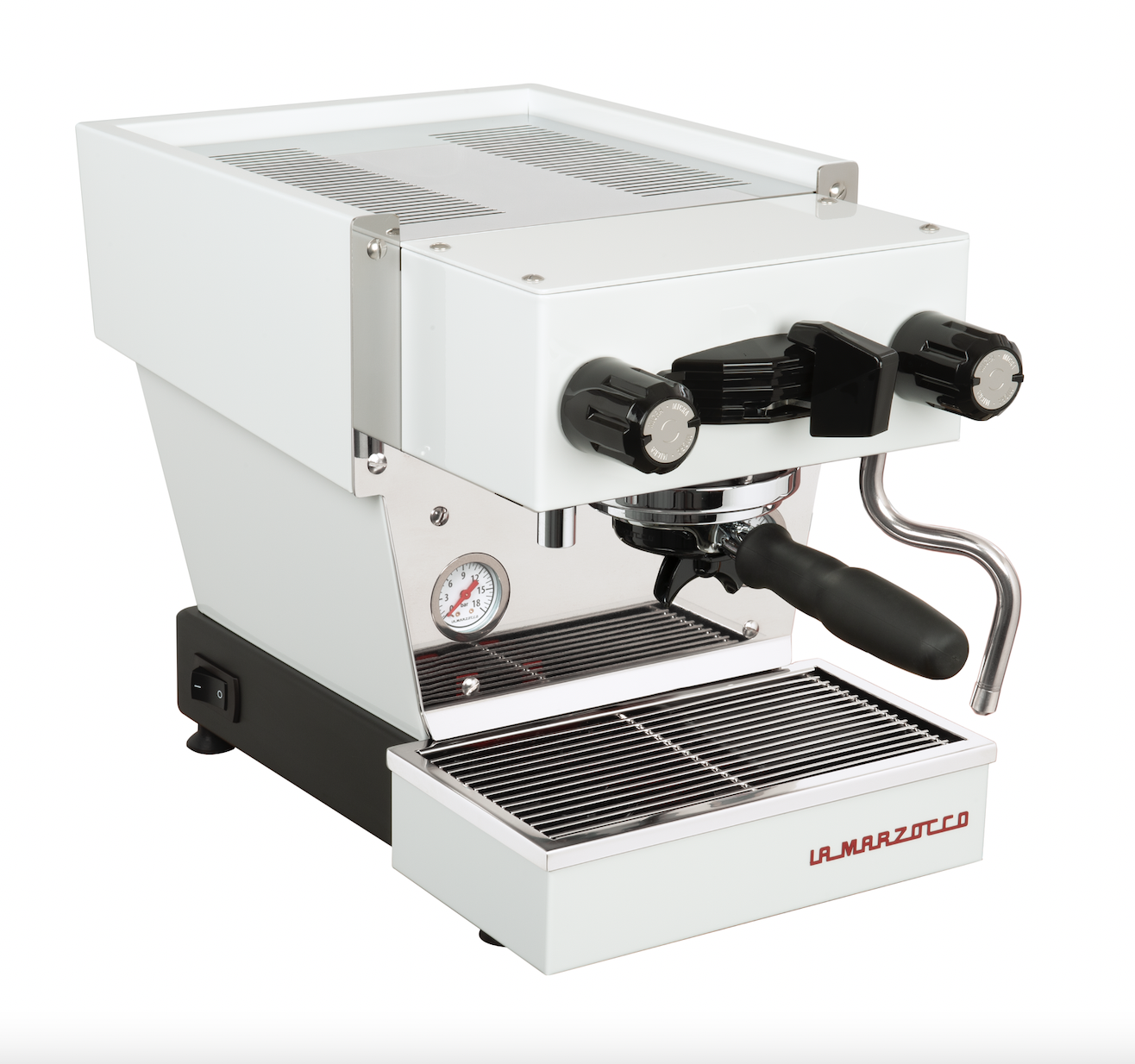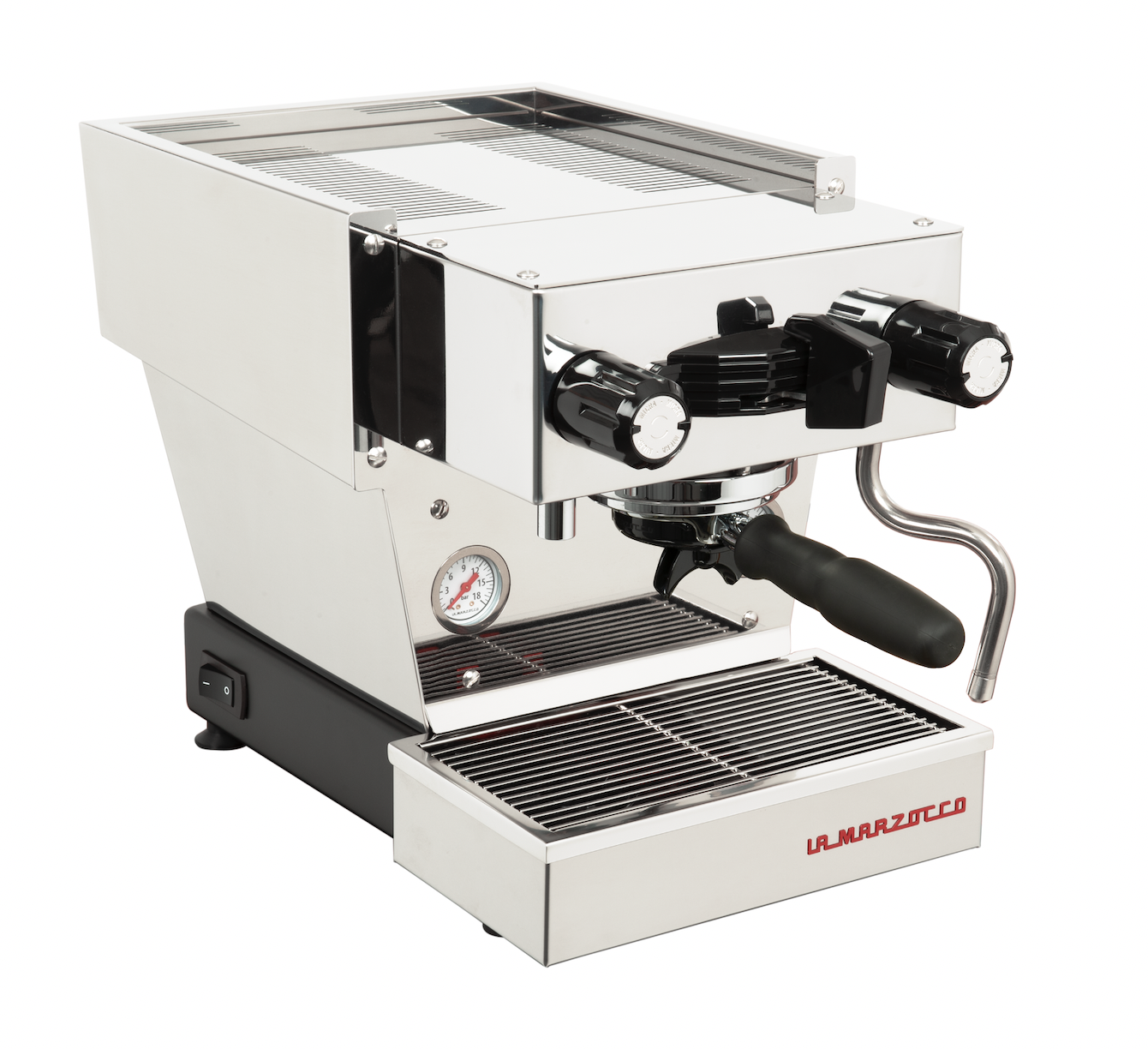Easy to clean and ready for any occasion, the Linea Micra’s three-in-one convertible portafilter quickly changes between single-spout, double-spout, and bottomless.