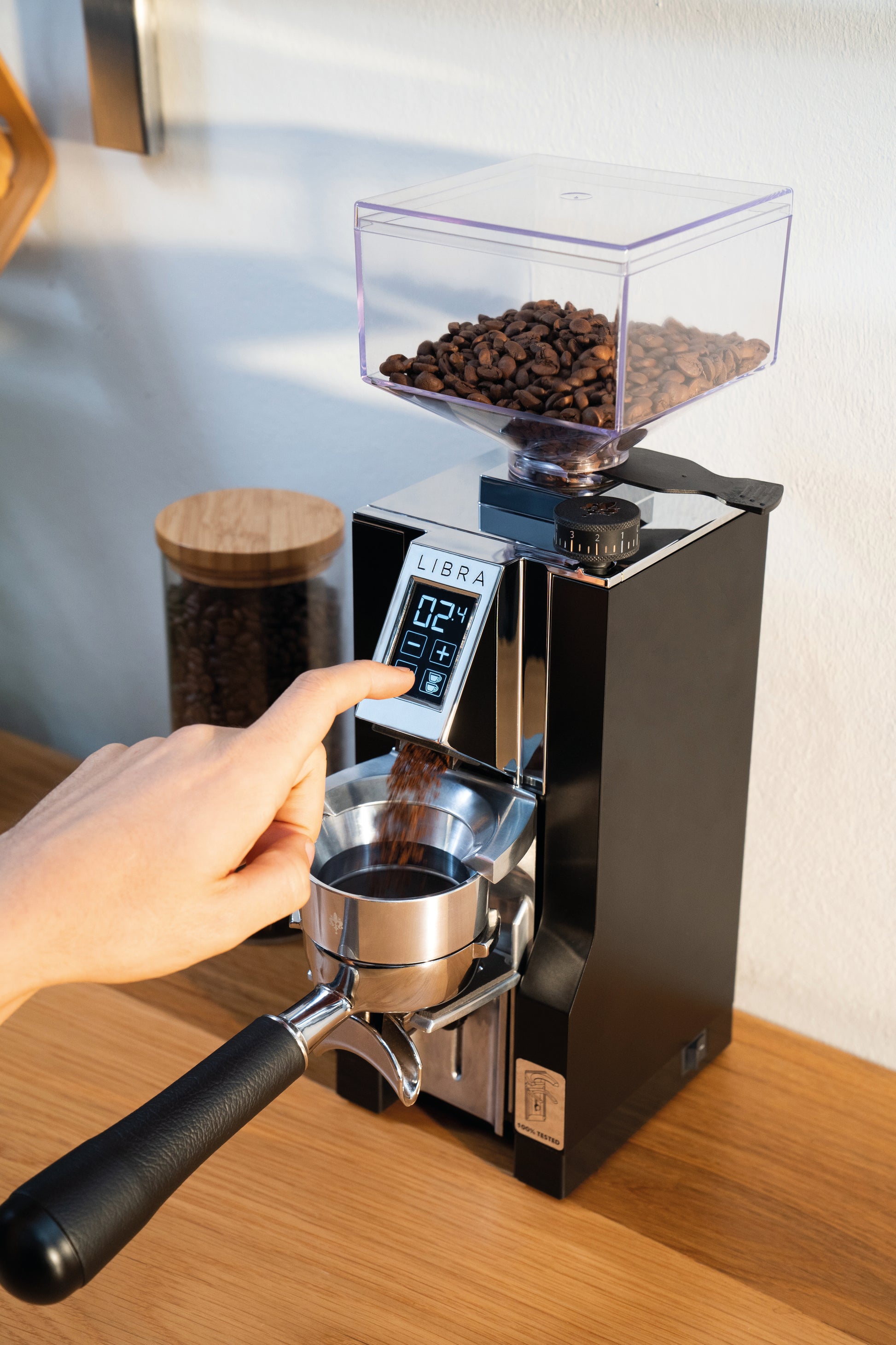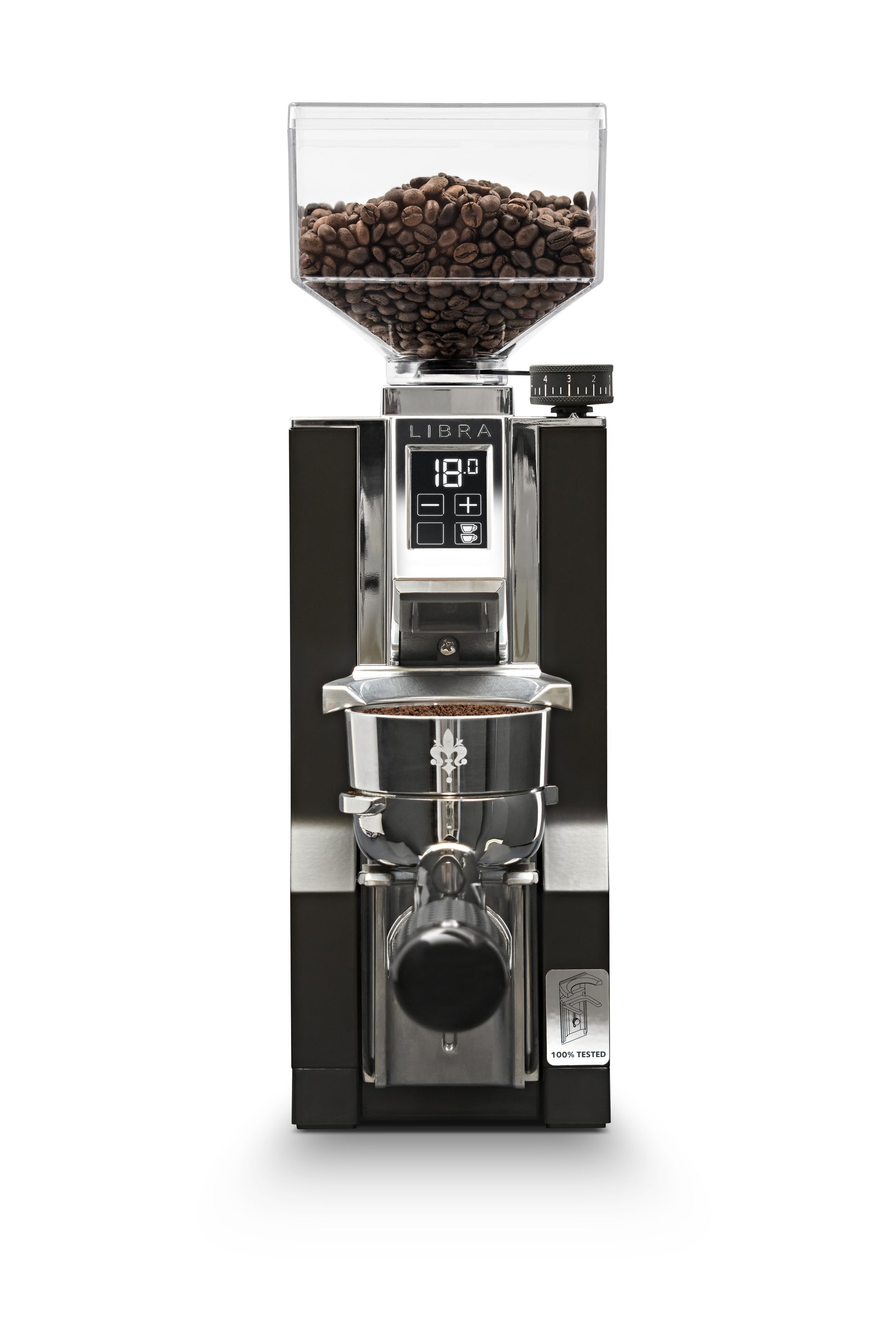 Ein mest selda kvörnin frá Eureka. Mjög hlóðlát hágæða heimakvörn sem malar út frá fyrirfram stilltum grömmum eða handvirkri stýringu. Kvörnin er með snertiskjá til að stilla þyngd mölunar fyrir einfaldan eða tvöfaldan espresso en einnig er hægt að stýra þyngd handvirkt.