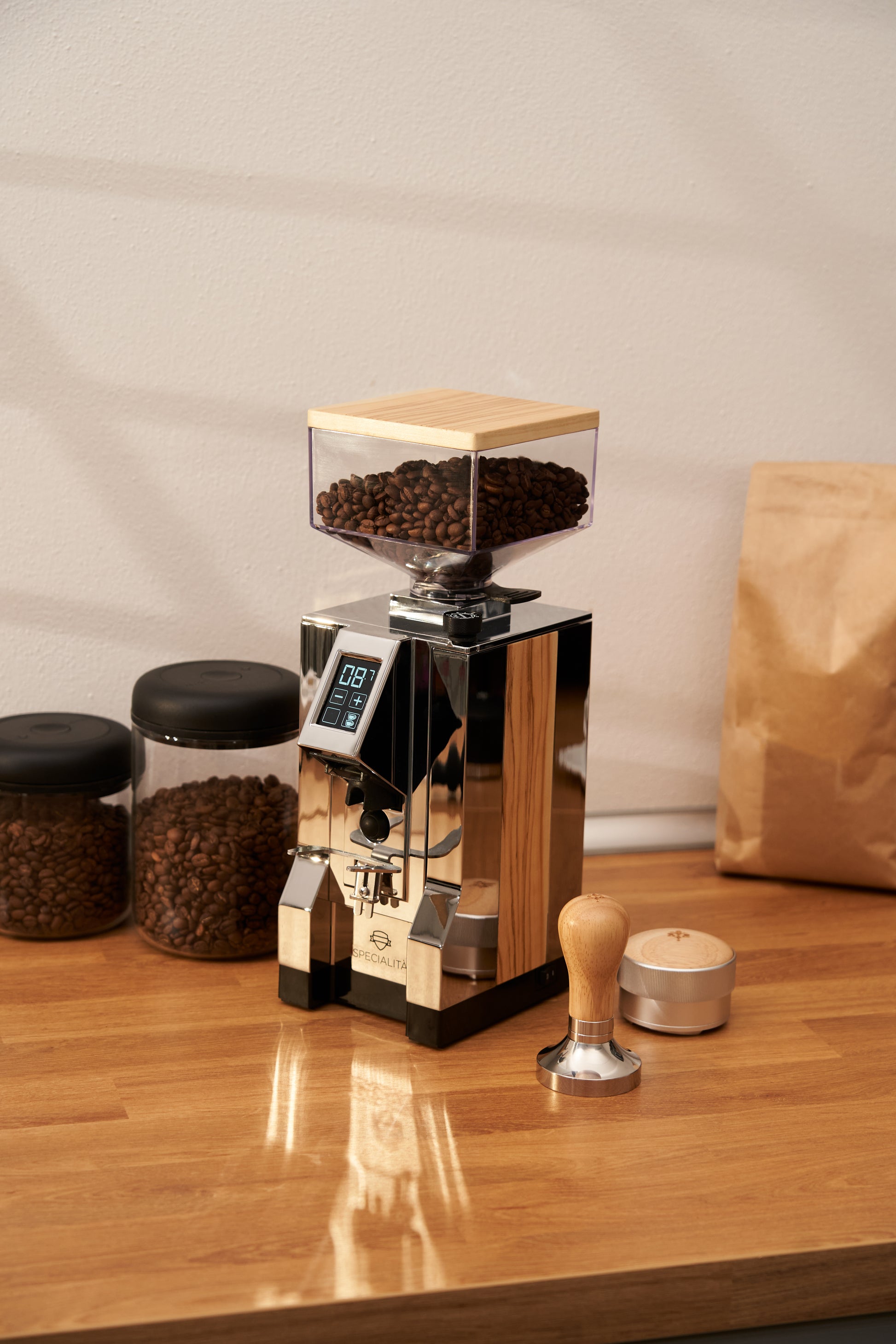 Ein mest selda kvörnin frá Eureka. Mjög hlóðlát hágæða heimakvörn sem malar út frá fyrirfram stilltum tíma eða handvirkri stýringu. Kvörnin er með snertiskjá til að stilla tímalengd mölunar fyrir einfaldan eða tvöfaldan espresso en einnig er hægt að stýra tímalengd handvirkt.